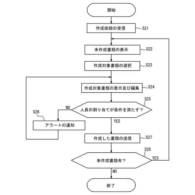 特許文献1のシステムにおいて、書類は作業者によって作成される。工事関係の業務において書類作成作業の負担が大きい。また、書類を作成するための情報を収集したり決定したりする作業の負担が大きい。工事関係の業務負担の低減が求められる。