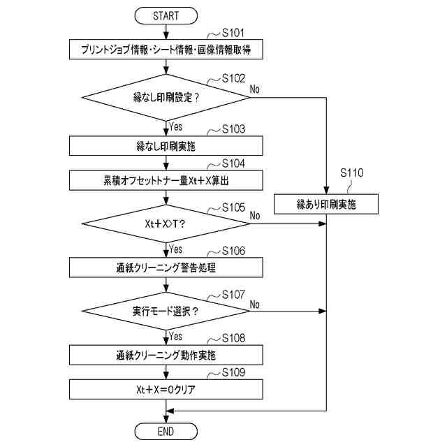 本発明によれば、縁なし印刷によって付着するトナー量が多いジョブの場合でも、装置の故障や後続紙への画像上汚れが顕在化する前にユーザーに知らせ、本体装置内に付着蓄積したトナーを適切に除去することができる。