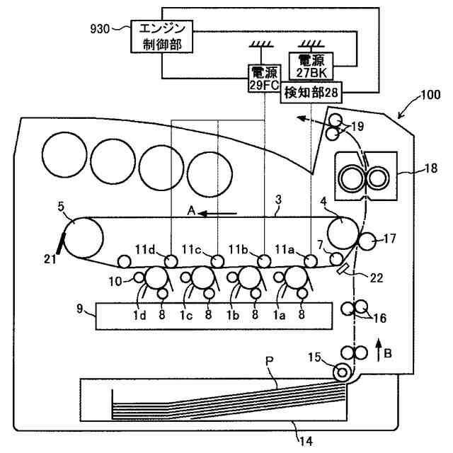 図1はプリンタとして構成された画像形成装置100の一例を示す概略構成図である。