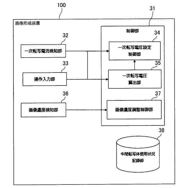 【解決手段】画像形成装置は、一次転写電圧が印加され、像担持体たる感光体のトナー像を一次転写部で中間転写体たる中間転写ベルトに一次転写する一次転写部材たる一次転写ローラと、一次転写電流検知部によって検知した一次転写ローラに流れる電流値に基づいて、一次転写電圧を設定する一次転写電圧設定制御を行う制御部たるエンジン制御部と、ユーザーの操作入力を受け付ける操作入力部たる操作パネルとを備えている。エンジン制御部は、操作パネルを通じて中間転写ベルト交換情報が入力されたタイミング、および、中間転写ベルトが交換された後の最初の画像形成後のタイミングで一次転写電圧設定制御を行う。