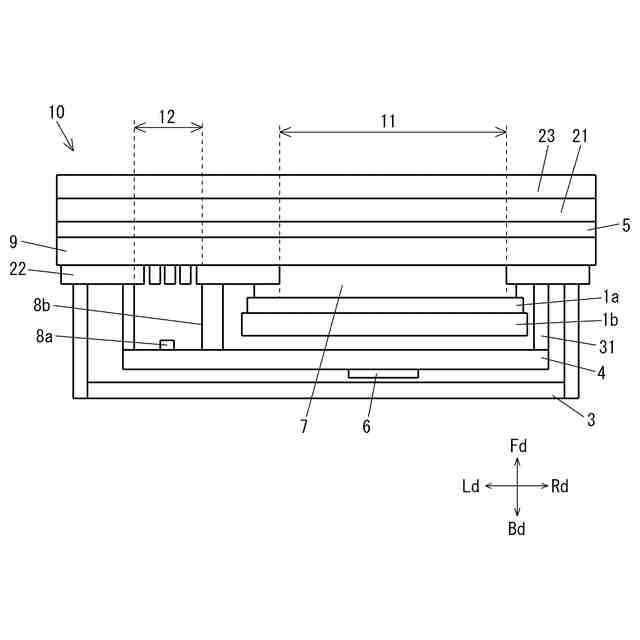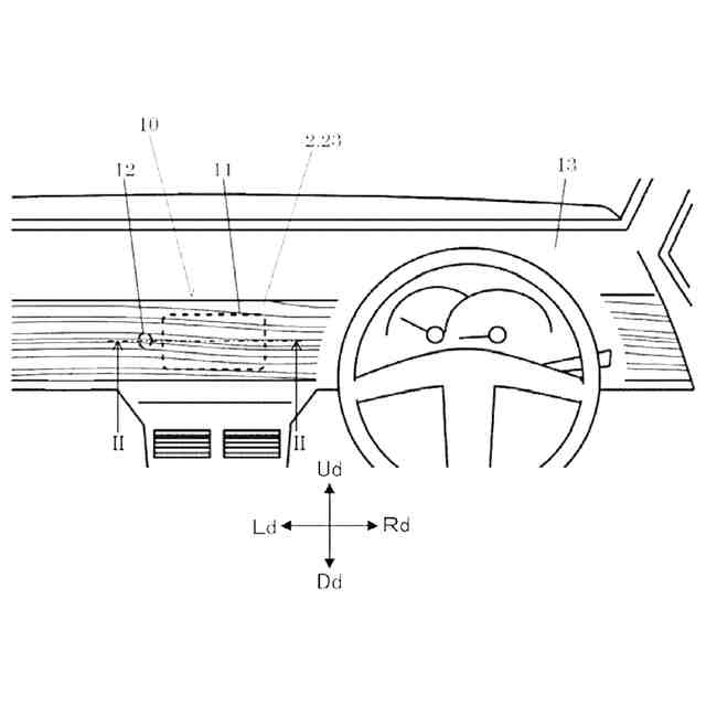 図1に示すように、車載表示装置10は、車両のダッシュボード13に搭載され、当該車両の搭乗者(主に運転者)であるユーザに各種情報を表示する。以下の説明では、車載表示装置10のユーザの視点を基準として、上方向Ud、下方向Dd、左方向Ld、右方向Rdを規定し、ユーザから見て手前方向を前方向Fdと規定し、ユーザから見て奥行き方向を後方向Bdと規定する。