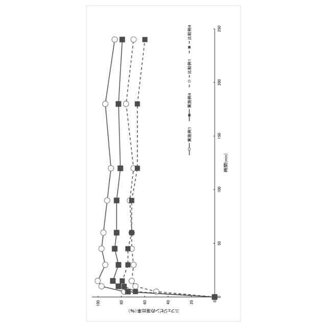 実施例1及び4、比較例1及び4における溶出時間とニフェジピンの溶出率(%)の関係を示すグラフである。