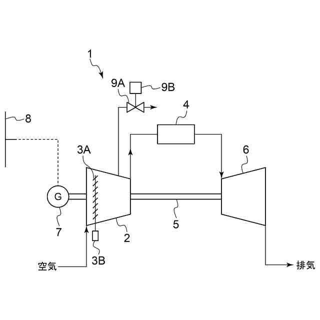 ガスタービンでは、燃料供給系統から供給される燃料を燃焼用空気と混合燃焼して生成した燃焼ガスを用いて、タービンが駆動される。燃焼ガスの生成に用いられる燃焼用空気は、ガスタービンが備える圧縮機によって生成される。特に、圧縮機の入口には、開度調整によって吸気流量を可変とするための入口案内翼(IGV:Inlet Guide Vane)が設けられるとともに、入口案内翼より下流側には圧縮機で生成される圧縮空気の一部を外部に抽気するための抽気弁を有するものが知られている。