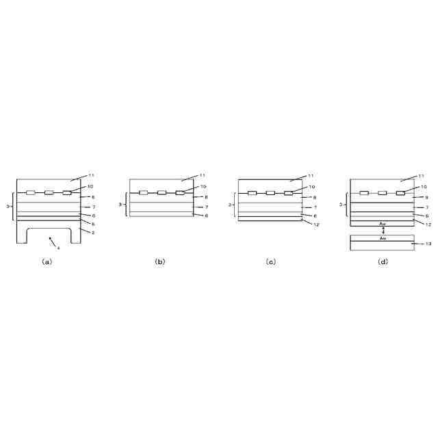 成長基板であるSi基板を除去し、初期層AlNを除去すればよいが、通常のSi基板を除去するのには長時間のエッチング時間を要する。エッチング時間を短縮するために単純にSi基板を薄くすると、Si基板の耐荷重が低減し、Si基板がヘテロエピタキシャル膜の応力に耐えられず、反りやクラック、割れが生じる。
