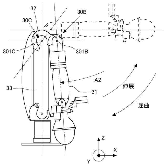 実施形態に係る第2関節部及び第3関節の作動状態を示す図である。