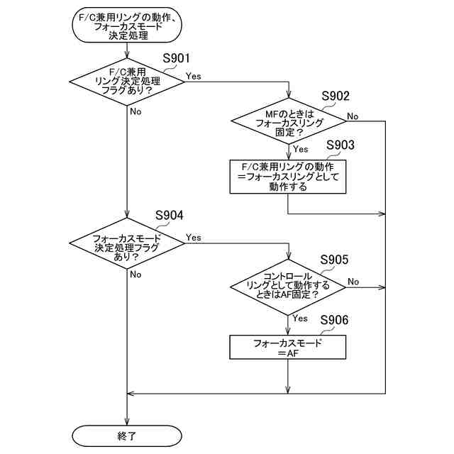 F/C兼用リングとフォーカスモード決定処理の詳細を示すフローチャートである。
