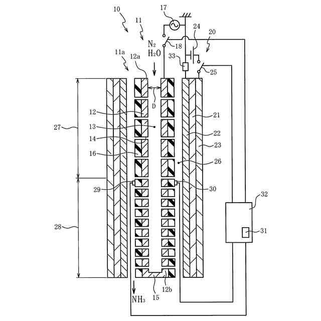 プラズマ発生装置を用いて励起した窒素と水の電気分解で発生した水素との反応によってアンモニアを合成する先行技術は特許文献1に開示されている。特許文献2や非特許文献1にはプロトン伝導性の電解質を含む電気化学セルとプラズマとを併用したアンモニア合成に関する先行技術が開示されている。