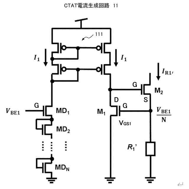 【解決手段】CTAT電流生成回路11は、カレントミラー回路111と、一方の電流パスに直列接続されたN個(N≧2)のトランジスタMD