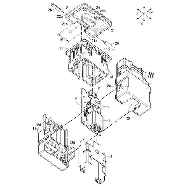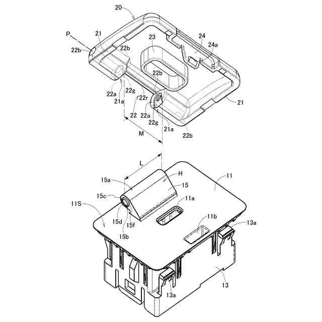 【解決手段】筐体10と、コネクタに挿入されるプラグが挿通する挿通孔11aを覆うことが可能な蓋体20と、筐体10と蓋体20とを切換可能に連結するヒンジ部Hと、を備えている。筐体10は、挿通孔11aが形成された端部壁11を有し、ヒンジ部Hは、端部壁11の外壁面11Sに立設され第1軸孔11aが形成されたヒンジブロック15と、蓋体20において第2軸孔22bが形成された軸受部21aと、第1軸孔15dから第2軸孔22bに亘って収容されるヒンジ軸と、を有している。蓋体20は、ヒンジ軸を中心に筐体10に対して閉じ姿勢から開放姿勢OPに切換えられる際に、ヒンジブロック15の当接面15bに当接することで開放側の限界を決める当接部22rを有している。