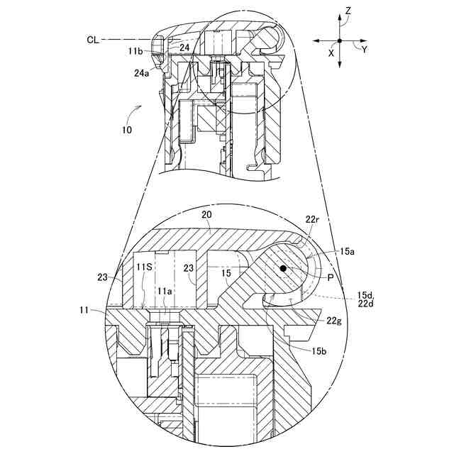 前記ブロック端面の前記第1軸孔を含む中央領域には、前記ブロック端面から突出させた突出係合部が形成され、