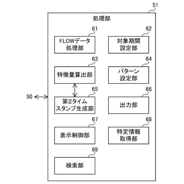 上記態様において、出力部は、出力処理として、第2時刻情報及びパターンによって特徴量及び複数の対象期間測定値を紐付け、紐付けた特徴量及び複数の対象期間測定値をさらに出力する。