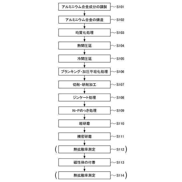 【解決手段】アルミニウム合金からなるブランク基板と、ブランク基板の両表面に形成されるNi-Pめっき層とを備え、厚さ方向の熱拡散率が53×10