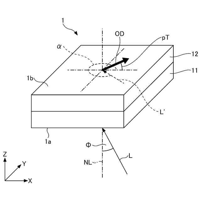 以下に示す図面において、方向を表すために、X軸、Y軸及びZ軸を備える直交座標を用いる。X軸に沿うX方向は、実施形態に係る位相差素子における光の入射面に沿う面内における所定方向を示す。Y軸に沿うY方向は、上記面内においてX方向と直交する方向を示す。Z軸に沿うZ方向は上記面に直交する方向を示す。X方向で矢印が向いている方向を+X方向、+X方向の反対方向を-X方向と表記する。Y方向で矢印が向いている方向を+Y方向、+Y方向の反対方向を-Y方向と表記する。Z方向で矢印が向いている方向を+Z方向、+Z方向の反対方向を-Z方向と表記する。実施形態では、+Z方向に進む光が位相差素子に入射し、位相差素子を透過した後、位相差素子から出射するものとする。本明細書では、光は+Z方向に進むものとする。また、本明細書において、+Z方向を「上」又は「上方」といい、-Z方向を「下」又は「下方」という。上面視とは、+Z方向から対象物を視ることをいう。但し、これらの方向表現は、本開示の実施形態の方向を限定するものではない。