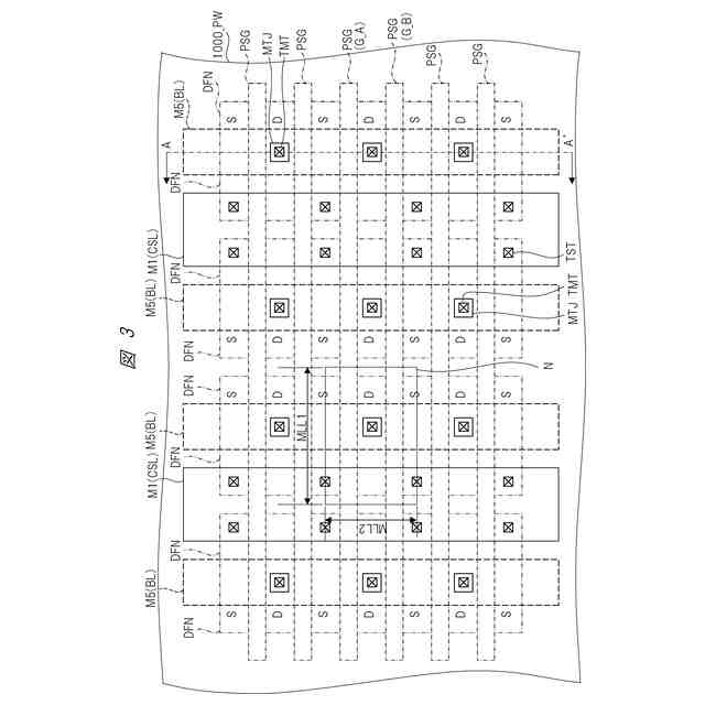 一般的に、微細化を進めてメモリセルサイズをシュリンクするほど、メモリアレイ内の外周部分に配置されているメモリセルの製造バラツキによる特性の変化が大きくなるため、ダミーセル領域に配置するメモリセルの数を増やすことが必要である。特に、MRAMの場合、メモリセルの抵抗値の差(記憶したデータに対応した高抵抗値と低抵抗値との間の差)が小さく、メモリアレイ内の外周部分に配置されているメモリセルの製造バラツキが大きいと読み出しエラーとなる可能性が高いため、さらにダミーセル領域に配置するメモリセルの数を増やすことが必要となる。