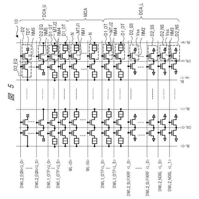 非特許文献1に示されているように、ダミーセル領域に配置されているメモリセルを、トリミング情報を格納するOTPとして使用すれば、ダミーセル領域の一部を有効的に利用することが可能である。しかしながら、トリミング情報等は、それほど大きな容量を必要としないため、ダミーセル領域に配置されているメモリセルは、その大部分が未使用となる。また、MRAMのような1つの記憶素子と1つの選択トランジスタで構成されるメモリセルは、記憶素子を備えていない選択トランジスタのみのメモリセルも、ダミーセル領域に配置される。記憶素子を備えていないため、このようなメモリセルは、OTPとして用いることができないため、このようなメモリセルは、未使用のメモリセルとなり、ダミーセル領域に配置されているメモリセルにおいて未使用のものは更に多くなる。
