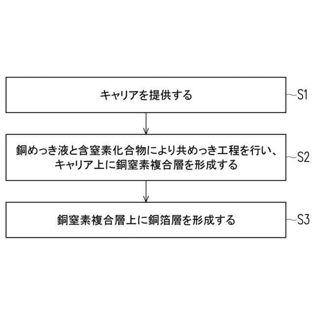 銅めっき液と含窒素化合物により共めっき工程を行い、前記キャリア上に銅窒素複合層を形成することと、