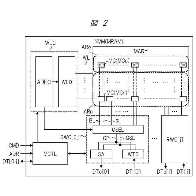 図2は、図1における不揮発性メモリの概略構成例を示す回路ブロック図である。