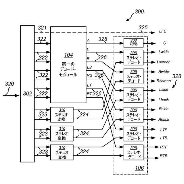 マルチチャネル・オーディオ・コンテンツは、ある数のチャネルをもつスピーカー構成に対応する。たとえば、マルチチャネル・オーディオ・コンテンツは五つの前方チャネル、四つのサラウンド・チャネル、四つの天井チャネルおよび低域効果(LFE)チャネルに対応していてもよい。そのようなチャネル構成は5/4/4.1、9.1+4または13.1構成と称されることがある。時に、エンコードされたマルチチャネル・オーディオ・コンテンツを、エンコードされたマルチチャネル・オーディオ・コンテンツより少数のチャネル、すなわちスピーカーをもつスピーカー構成をもつ再生システムで再生することが望ましい。以下では、そのような再生システムはレガシー再生システムと称される。たとえば、エンコードされた13.1オーディオ・コンテンツを、三つの前方チャネル、二つのサラウンド・チャネル、二つの天井チャネルおよびLFEチャネルをもつスピーカー構成で、再生することが望ましいことがありうる。そのようなチャネル構成は3/2/2.1、5.1+2または7.1構成とも称される。