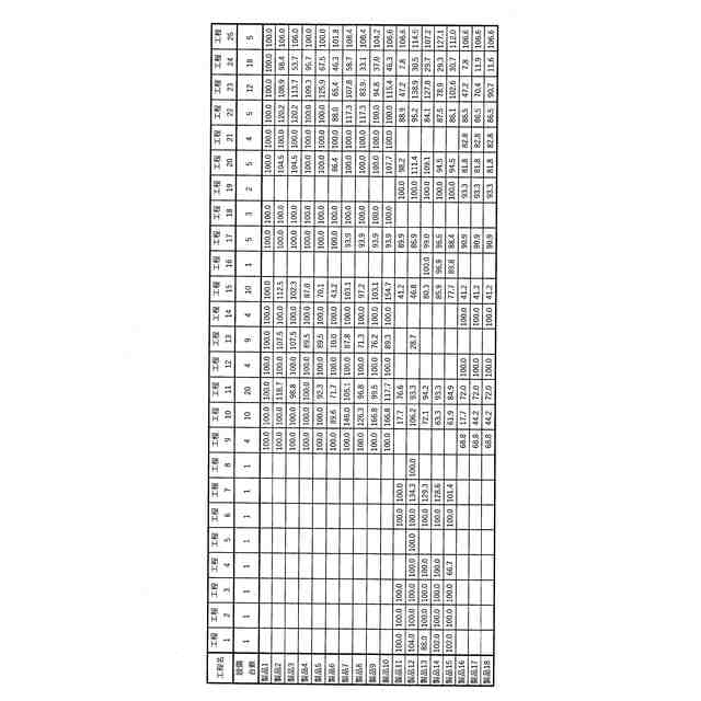 各前記工程を行うために使用される1種類以上の設備の保有数と、