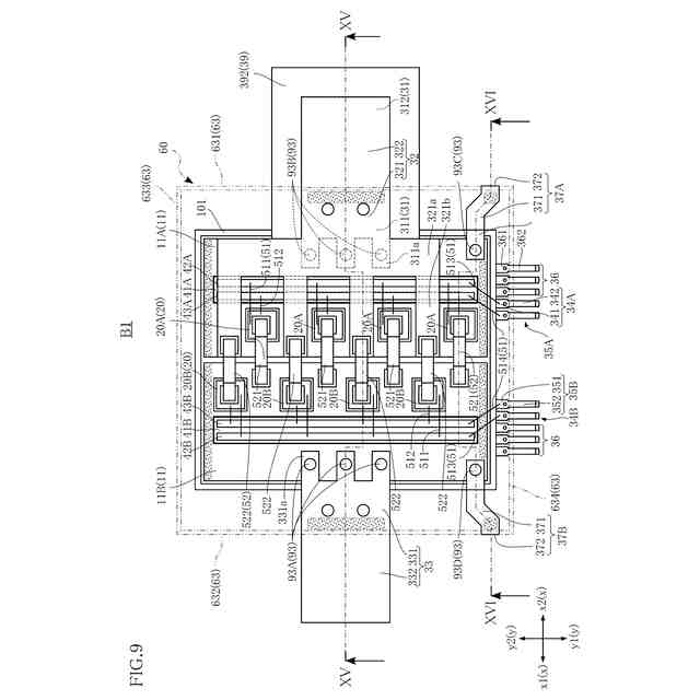 【解決手段】半導体装置B2は、複数のスイッチング素子と、複数のスイッチング素子の各々を封止する封止樹脂60と、第1パッド部311および端子部312を含む入力端子31と、第2パッド部321および端子部322を含む入力端子32と、第3パッド部および第3端子部を含む出力端子と、端子部312に導通接合された供給端子71と、を備える。入力端子31、32及び出力端子は、複数のスイッチング素子に電気的に接続されている。封止樹脂は、z方向に見て、端子部312、322の少なくとも一部と、第3端子部の少なくとも一部とを囲み、供給端子71と端子部312との導通接合は、供給端子71の一部と端子部312の一部とが融接された溶接部93の供給端子接合部93Eを備えている。