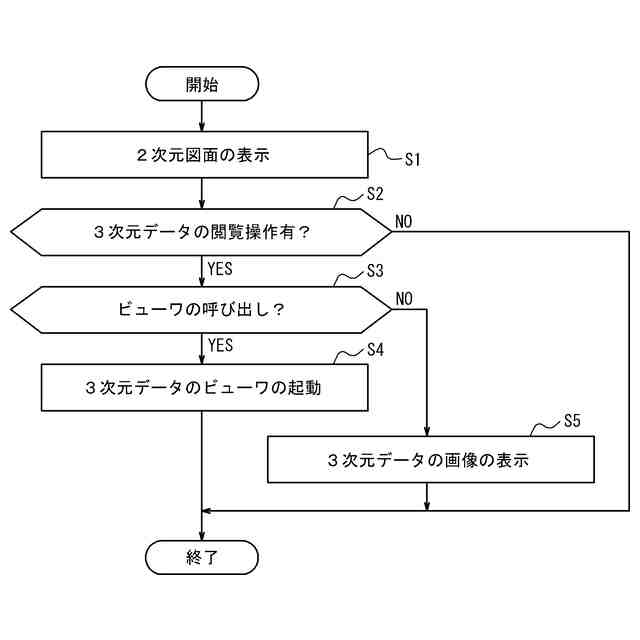 (5)上記(3)に記載の表示方法の前記3次元データを前記ビューワによって表示させるステップにおいて、前記表示情報を変更する操作を前記ビューワに対して直接入力できるように、前記ビューワが前記2次元図面に埋め込んだモジュールとして起動されてよい。前記表示情報の変更に応じて前記ビューワによる前記3次元データの表示が変更されてよい。