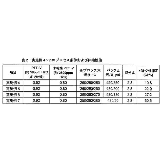 【解決手段】第1の実施形態において、2成分繊維を製造する方法であって:a)2つまたはそれ以上の独立した溶融物流を作製することができる紡糸機で第1および第2の成分を押し出すことと;b)2成分繊維の製造に適合した紡糸口金で溶融物流を組み合わせることと;c)工程(b)で作製された2成分繊維を空気中でクエンチすることと;d)クエンチされた2成分繊維を延伸し、ヒートセットすることと;e)工程(d)の2成分繊維を任意の好適な手段によって巻き取ることとを含み;第1の押出成分は第2の押出成分よりも低い水分レベルを有する、方法が開示される。