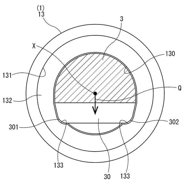 前記凹部は、前記ラック軸の軸方向断面において、最も窪む底部を境に両側が非対称となる第1傾斜面及び第2傾斜面を有していて、