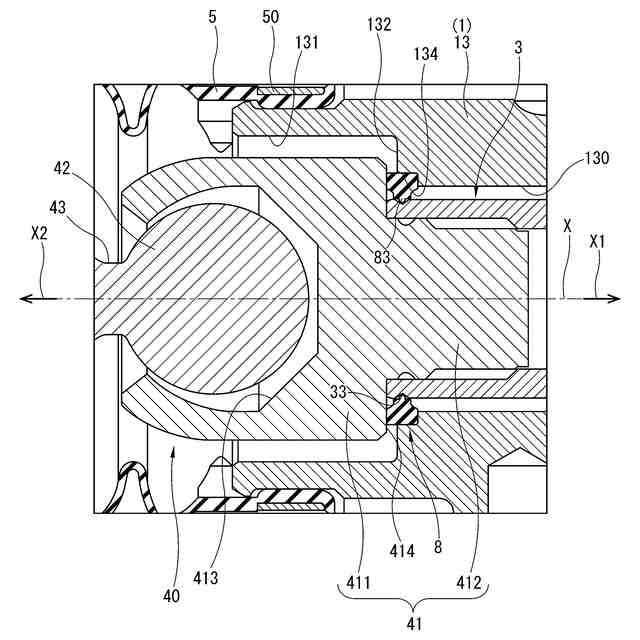 前記ラック軸の軸方向端部において前記ラック軸の周方向に連続する環状に設けられ、前記ラック軸の径方向内側へ窪む凹部と、