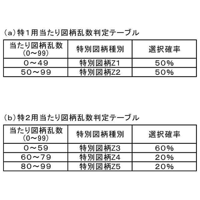 (a)は普図当たり決定乱数判定テーブルを説明する図であり、(b)は非時短遊技状態用普通図柄決定乱数判定テーブルを説明する図であり、(c)は第1時短遊技状態用普通図柄決定乱数判定テーブルを説明する図であり、(d)は第2時短遊技状態用普通図柄決定乱数判定テーブルを説明する図であり、(e)は第3時短遊技状態用普通図柄決定乱数判定テーブルを説明する図である。