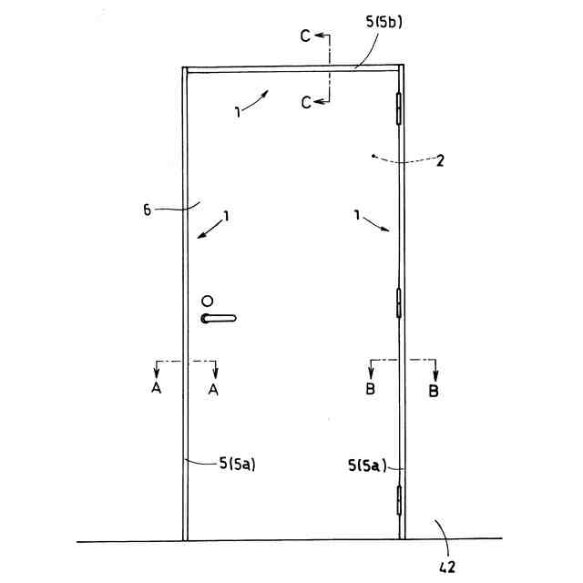 (2) 又、前記固定板12に前記接続プレート23を係止させる作業を、前記のように、前記固定板12の側端部の所要部位を前記接続プレート23の係止溝23bに侵入させて行う場合は、例えば地震振動によって該係止が緩む恐れがあり出入り用開口部の強度を不安定化させる恐れがあった。