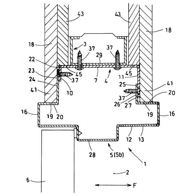 前記枠材11は、前記開口部の内側面部を形成するものであり、該枠材11の一端側の部分をなす前記固定リブは、前記下地材21に向けて折曲形成された固定リブを有し、或いは、別体のアングル材を組み合わせて形成された固定リブを有している。そして、該固定リブを前記取付材の一方に直接ねじ止めするように構成されている。