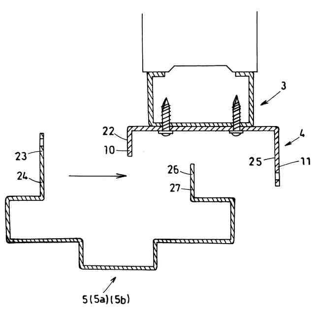 これに対して、前記枠材11の他端側の部分は、これを前記取付材の他方に直接ねじ止めすることとはせず、前記固定板12と、該固定板12にそれぞれ対応する前記接続プレート23とを用い、対応の前記固定板12に係止された前記接続プレート23を前記取付材の他方にねじ止めするように構成されている。