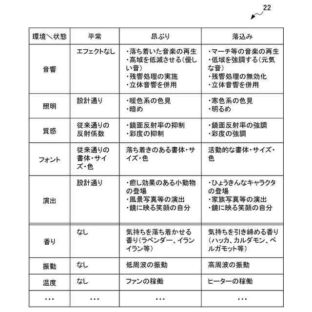 図2は、本実施形態に係るメタバースサーバ1の記憶部20に記憶される環境指示テーブル22の例を示す図である。