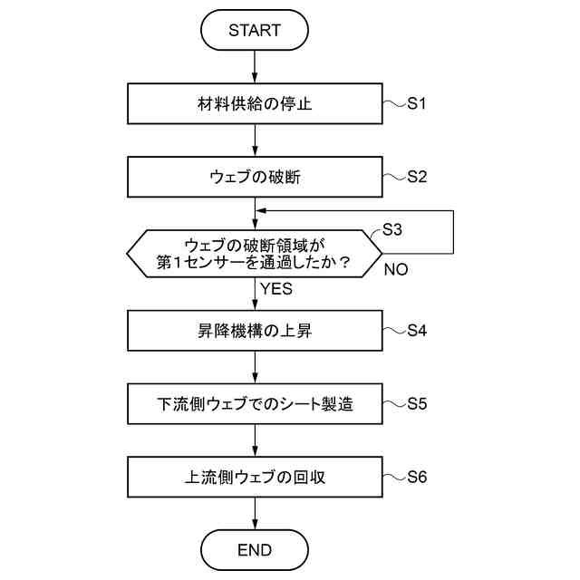 シート製造方法における稼働停止動作の各ステップを示すフロー図。