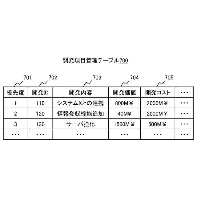 所定の事業者における複数のユーザがアクセスする対象システムに対する各開発項目とその優先度を含む開発項目情報を記憶する情報処理装置が、