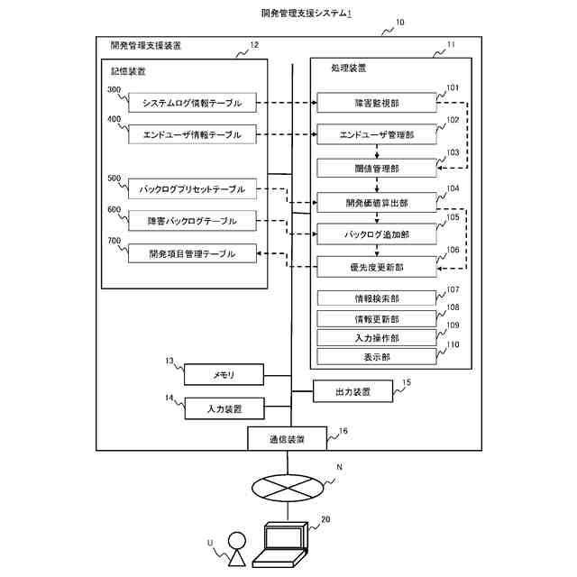 前記優先度更新処理において、前記発生した障害によるアクティブユーザの増減による前記事業者の損益に基づいて、前記発生した障害を是正する開発項目の優先度を更新する、