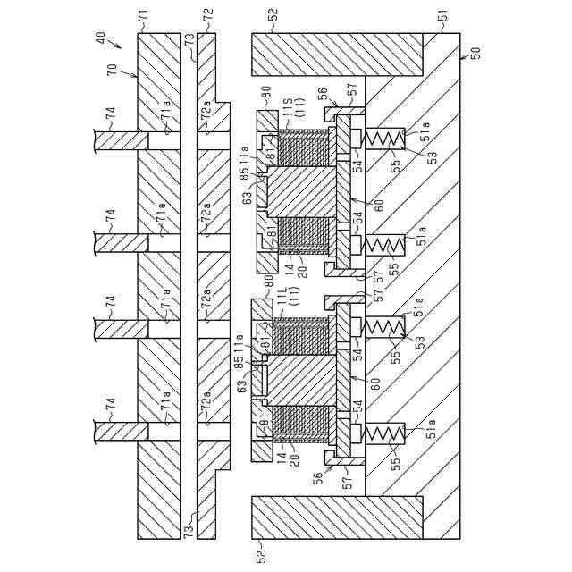 ここで、第1型及び第2型が、複数のロータコアを一括して挟み込んで型締めする際に、複数のロータコアの軸線方向の寸法が互いに異なる場合には、以下の不都合が生じるおそれがある。すなわち、軸線方向の寸法が小さいロータコアが、第1型及び第2型によって挟み込まれないおそれがある。この場合、複数のロータコアの寸法差に起因して、型締め時の製造装置内に樹脂材が漏出する隙間が生じるおそれがある。