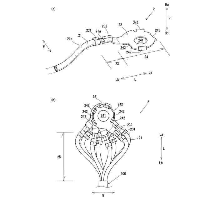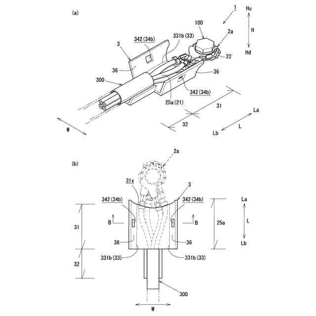 上記電線は、被覆電線や、前記被覆電線を束ねたワイヤーハーネス、光ファイバーケーブルなどの通信用ケーブルや前記通信用ケーブルの束、ワイヤーハーネスと前記通信用ケーブルの束とを束ねたものなどを含む。