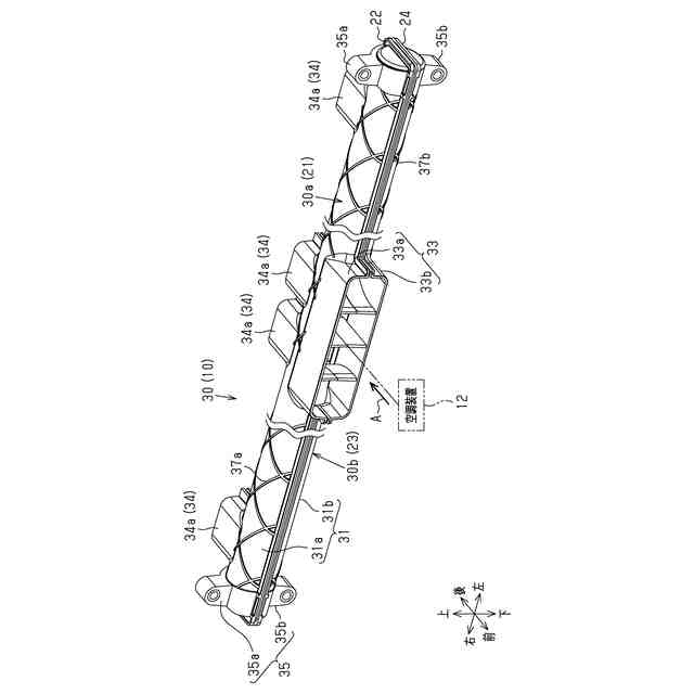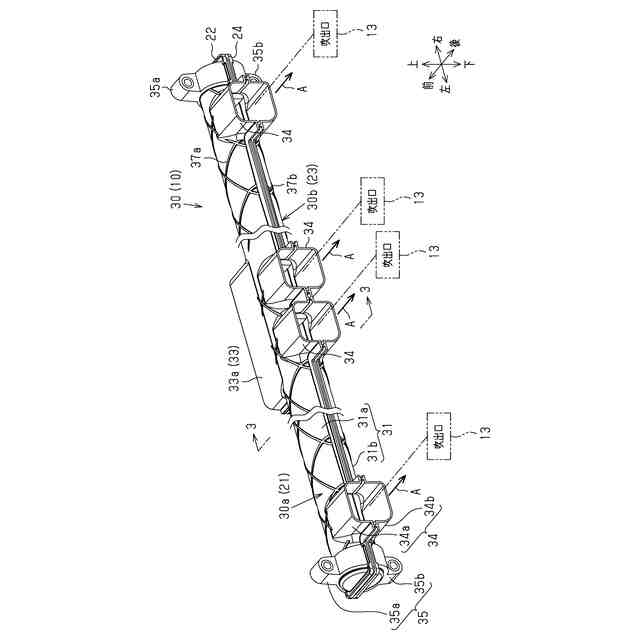 【解決手段】ビーム10は、インストルメントパネル内で車幅方向に延びるとともに、車幅方向の両端が車体に取り付けられる円筒状のビーム本体30を備える。ビーム本体30は、ビーム本体30の周方向において分割された2つの樹脂製のビーム半割体30a,30bから構成されている。ビーム半割体30a,30bの上記周方向における中央部C1,C2には、上記周方向における他の部分よりも薄肉な薄肉部36が設けられている。