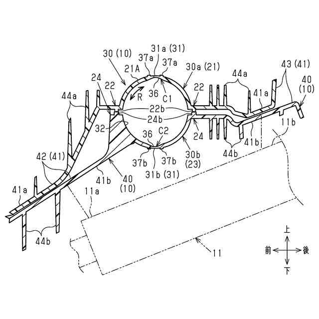 ところで、特許文献1に記載のリンフォースメントメンバーを樹脂製とする場合、特許文献2に記載のビーム本体のように周方向において複数の分割体に分割される構成とすることが考えられる。しかしながら、この場合、以下の問題が生じる。