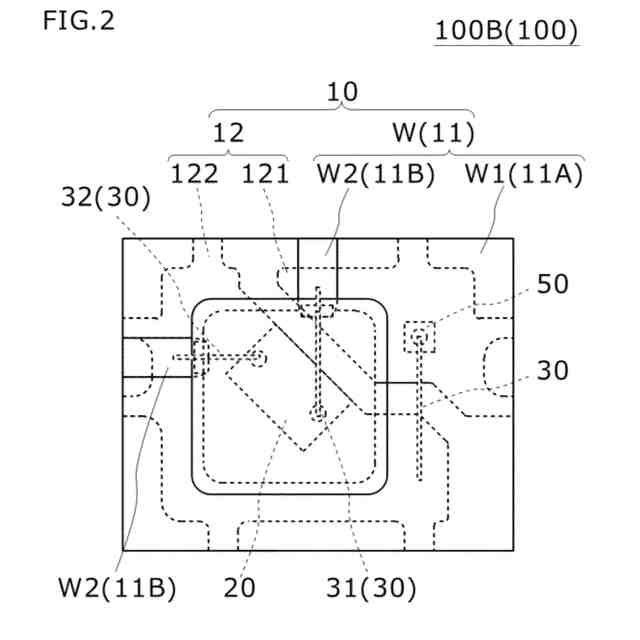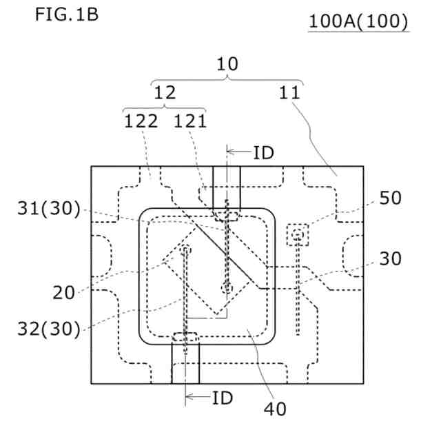 前記側壁部は、前記素子載置領域を挟むように配置される2つの第1内側面と、前記ワイヤ接続領域を挟むように配置される2つの連結側面と、を有し、