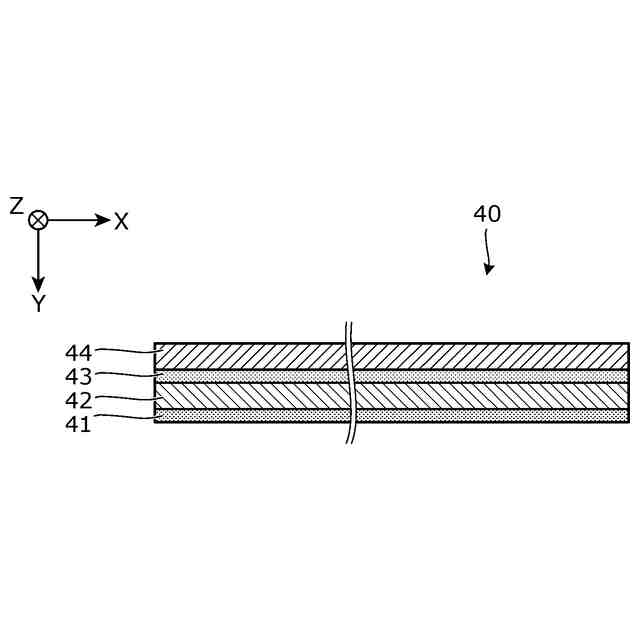 前記接着テープは、第一基材層と、前記第一基材層よりも前記端子及び前記検出線から遠い位置に配置される第二基材層とを備え、