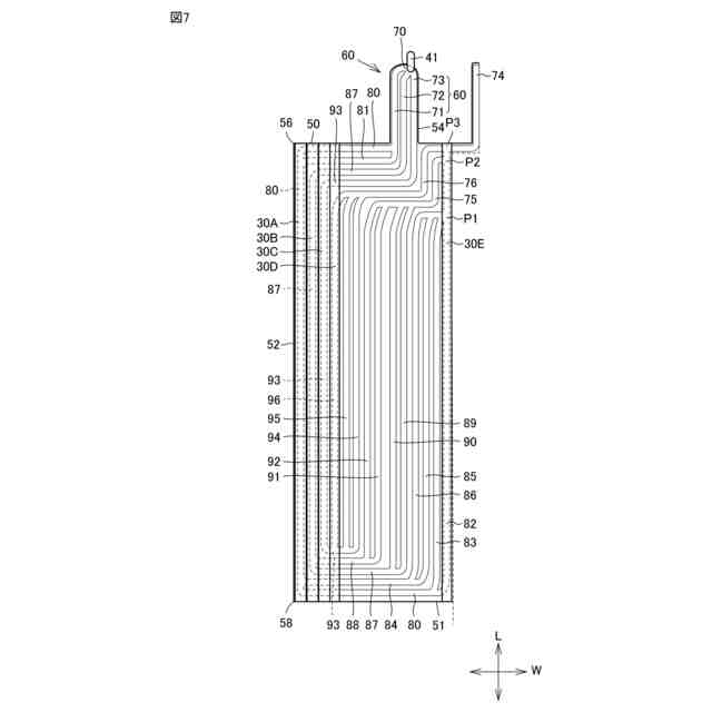 前記第1流路管は、前記第1端辺に沿って前記第1側辺に向けて延び、前記第1側辺に沿って前記第2端辺に向けて延び、前記第2端辺に沿って延びるように形成されており、