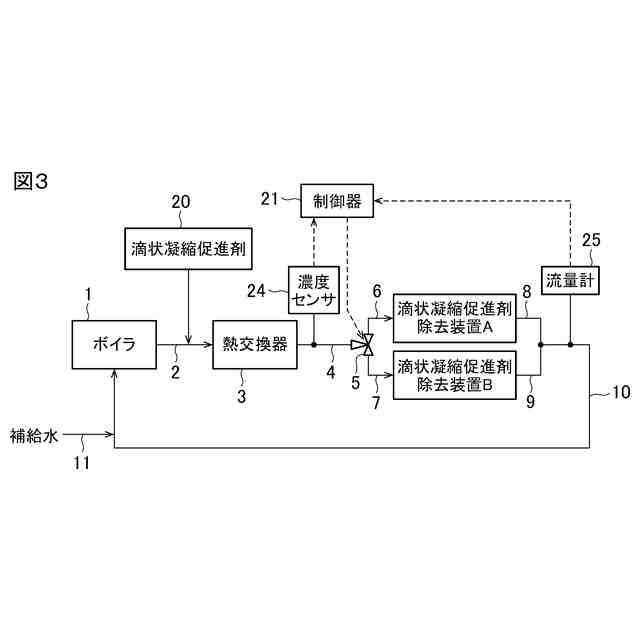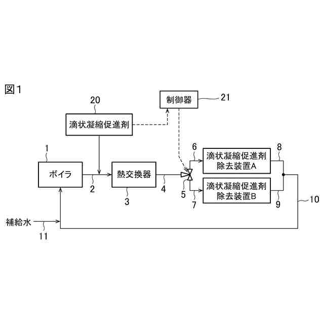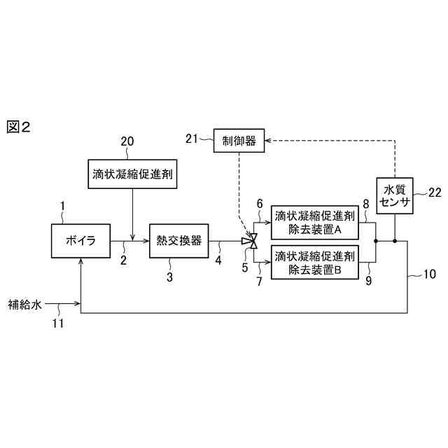 カーボンニュートラルの観点から、効率的な熱交換ニーズも高く、近年は滴状凝縮を実現する有機薬剤(滴状凝縮促進剤)が利用されている。例えば、蒸気式の熱交換器の加熱効率向上を目的として、ポリアミン等の薬剤がボイラ給水又は蒸気に添加されることがある(特許文献1)。