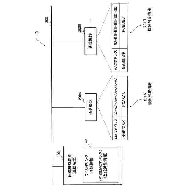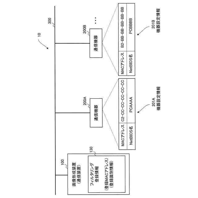 登録されているMAC(Media Access Control)アドレスである登録MACアドレスを用いてフィルタリングを行うMACアドレスフィルタリング機能を備える通信装置がある(例えば、特許文献1を参照)。この通信装置は、MACアドレスフィルタリング機能によって、登録MACアドレスと同じMACアドレスを持つ通信機器との通信を許可する。