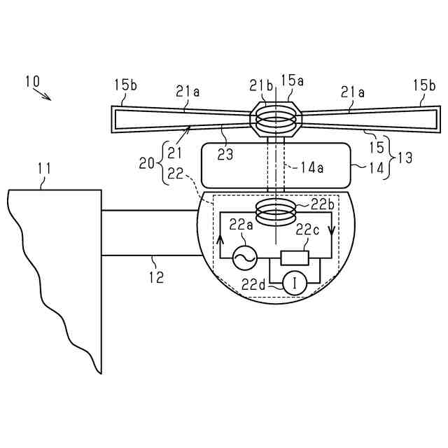 前記プロペラに備えられて、少なくとも自身の羽根部(15b)に導電性部材(23,24)を組み込んで前記羽根部の損傷に伴い前記導電性部材に変形又は断線が生じ得るようにして損傷センサ(21a)として機能させ、前記導電性部材を含む回路の電気特性の変化を前記プロペラの外部に伝達可能に構成された検知部(21)と、
