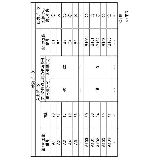 したがって、第1の画像と、N値との組み合わせである入力データに対する水捌けの良、不良の関係性を機械学習によって学習しモデルを生成することで、このモデルに基づいて、判定用領域における水捌けの良、不良が判定可能になる。