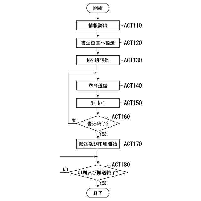 画像形成装置1が書込及び印刷処理を行う処理の流れの一例を示す図である。