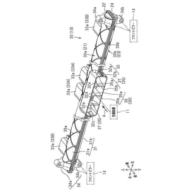 【解決手段】ビーム本体は、インレット32及び複数のアウトレット33と、インストルメントパネル内で車幅方向に延びるとともに、空調用空気が流れる流路40を形成する筒状のダクト部31とを備える。複数のアウトレット33は、第1アウトレット33Aと、車幅方向において第1アウトレット33Aよりもインレット32から離れた位置に配置される第2アウトレット33Bとを含んでいる。流路40には、インレット32を、第1開口部32d及び第2開口部32eに分割するとともに、流路40を、第1開口部32dから第1アウトレット33Aに延びる第1流路41と、第2開口部32eから第2アウトレット33Bに延びる第2流路42とに分割する第1仕切り部37が設けられている。