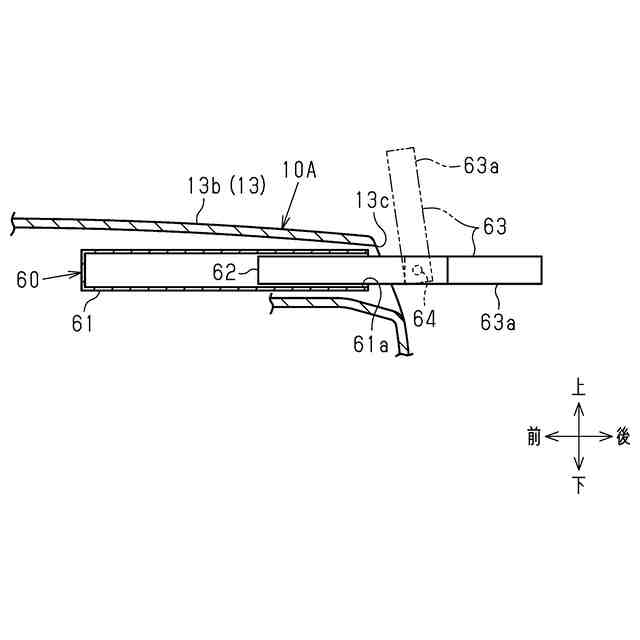 [態様2]前記インストルメントパネル内に収容される第1位置と、前記インストルメントパネルから後方に突出する第2位置と、の間で変位可能に構成された保持部と、前記保持部に対して回動可能に取り付けられる表示部と、を有する表示装置をさらに備え、前記表示装置は、前記第1位置にあるときに、前記ビームよりも上方に位置している、[態様1]に記載のインストルメントパネル構造。